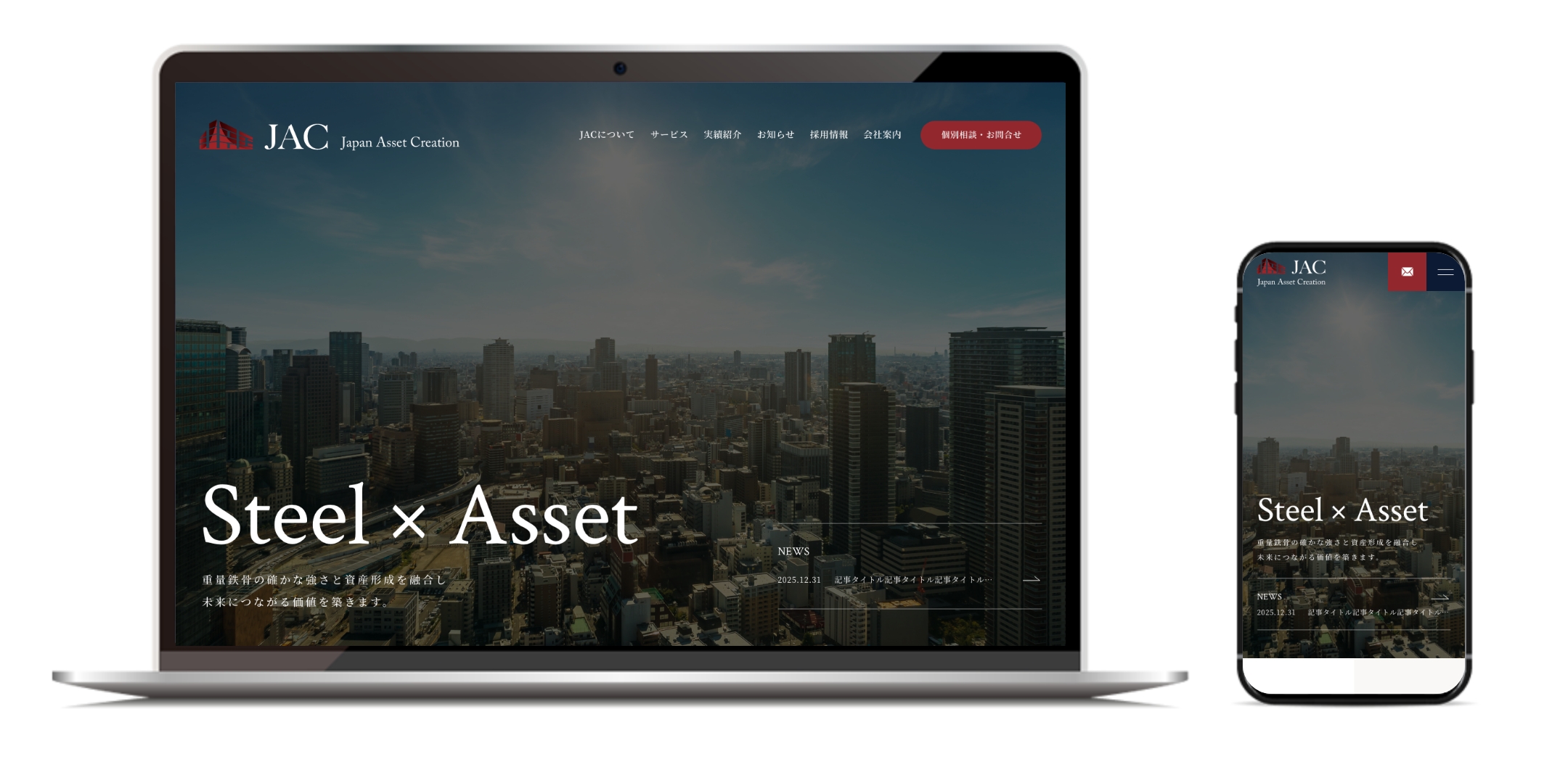 今回のリニューアルでは、「Steel × Asset」というコンセプトのもと、重量鉄骨建築による資産価値の最大化と、ワンストップで支援する事業モデルの強みが直感的に伝わるサイト設計を行いました。